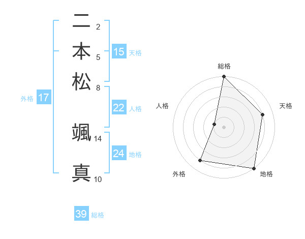 二本松 颯真さんの総格は39画の5点!