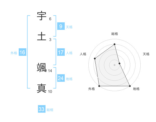 宇土 颯真さんの総格は33画の4点!