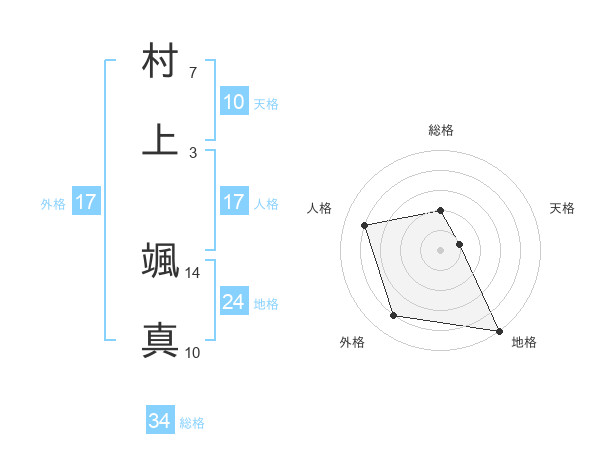 村上 颯真さんの総格は34画の2点!