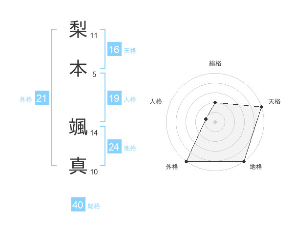 梨本 颯真さんの地格は24画の5点!