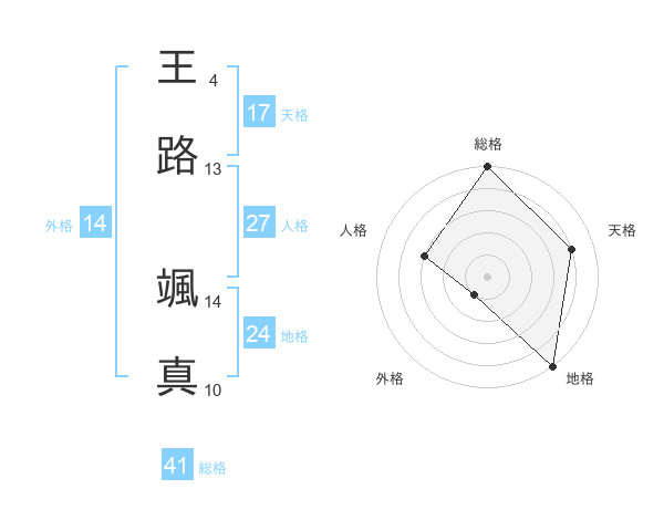 王路 颯真さんの天格は17画の4点!