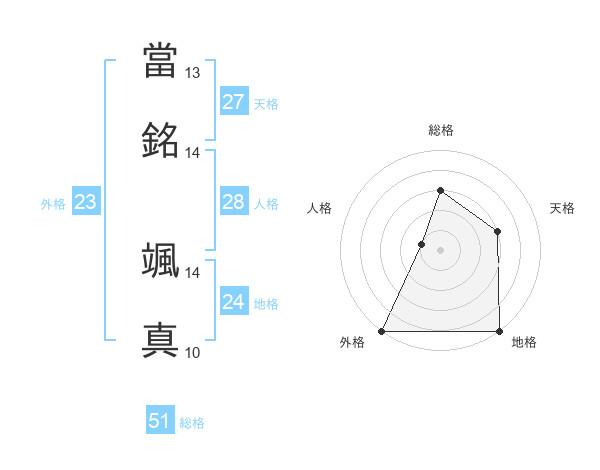 當銘 颯真さんの総格は51画の3点!