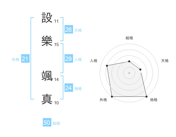 設樂 颯真さんの総格は50画の2点!