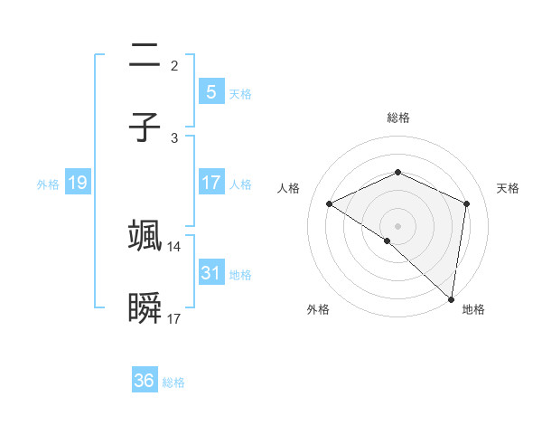 二子 颯瞬さんの地格は31画の5点!