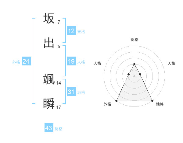 坂出 颯瞬さんの外格は24画の5点!