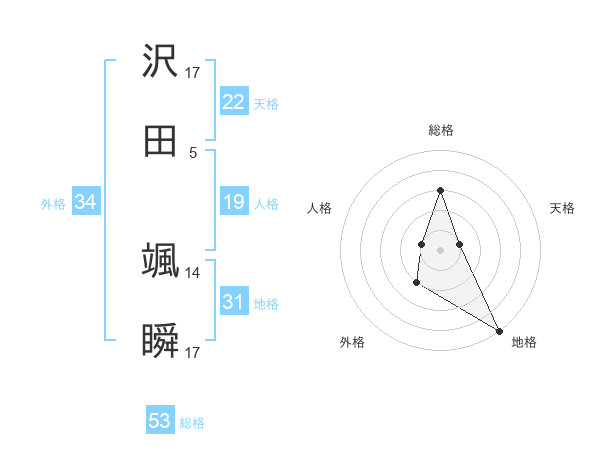 沢田 颯瞬さんの総格は53画の3点!