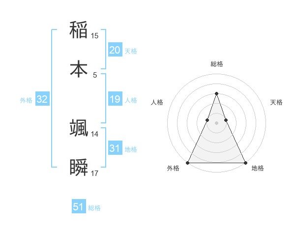 稲本 颯瞬さんを姓名の画数から五運を鑑定