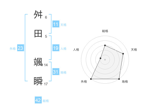 舛田 颯瞬さんの天格は11画の4点!