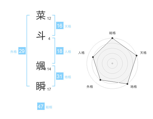 菜斗 颯瞬さんを姓名の画数から五運を鑑定