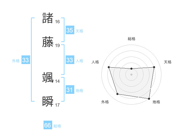 諸藤 颯瞬さんの地格は31画の5点!