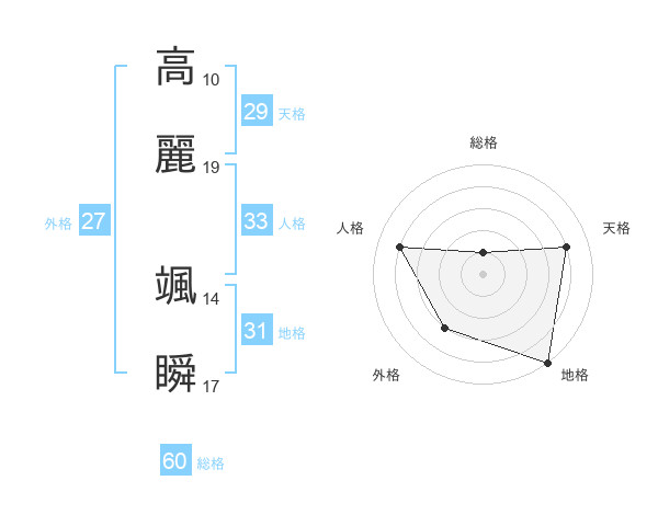 高麗 颯瞬さんの総格は60画の1点!
