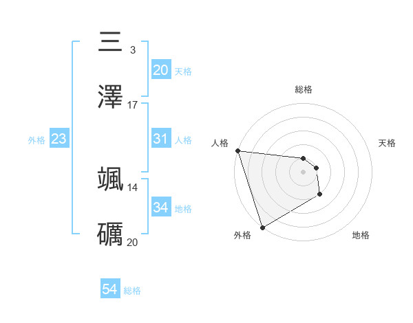 三澤 颯礪さんを姓名の画数から五運を鑑定