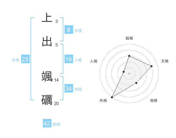 上出 颯礪さんを姓名の画数から五運を鑑定