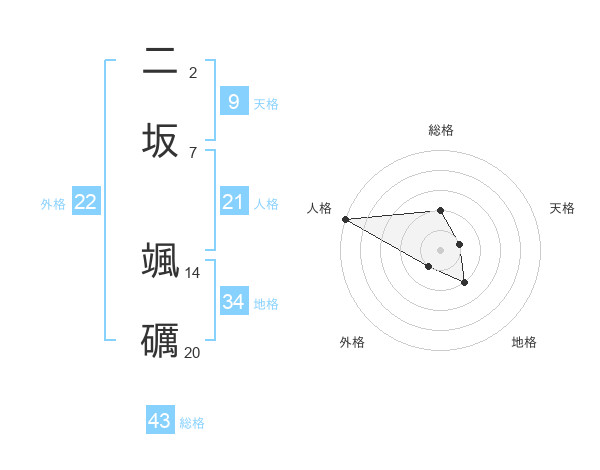二坂 颯礪さんの外格は22画の1点!