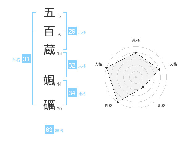 五百蔵 颯礪さんの総格は63画の4点!