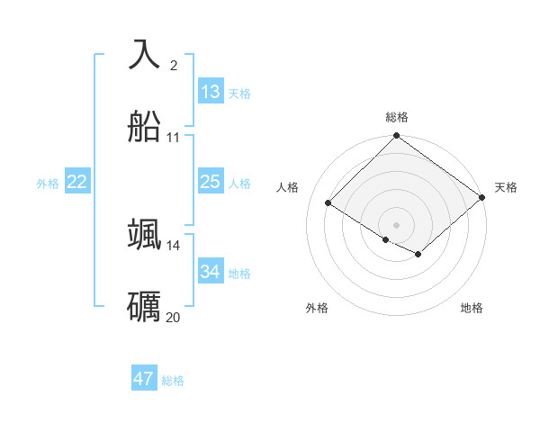 入船 颯礪さんを姓名の画数から五運を鑑定