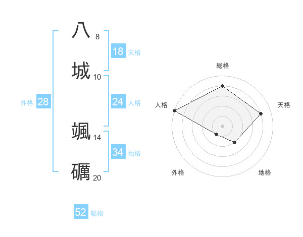 八城 颯礪さんの総格は52画の4点!