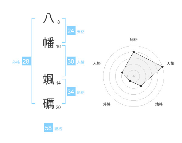 八幡 颯礪さんを姓名の画数から五運を鑑定