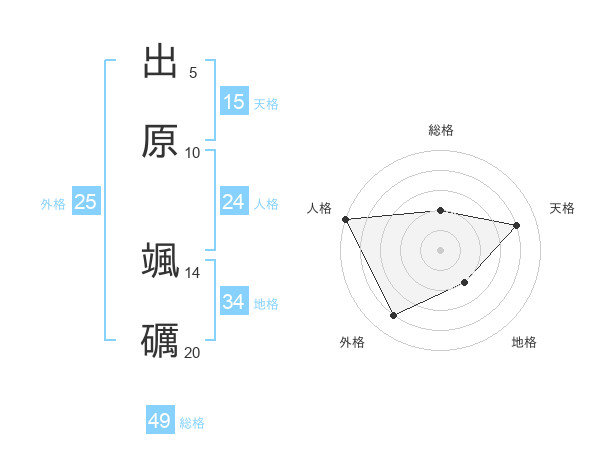 出原 颯礪さんを姓名の画数から五運を鑑定