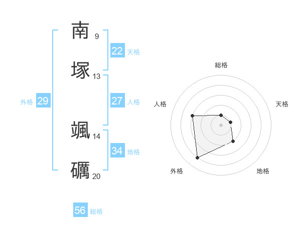 南塚 颯礪さんの天格は22画の1点!
