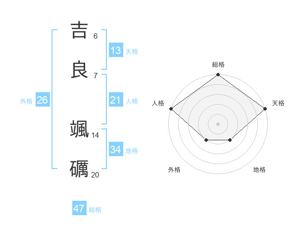 吉良 颯礪さんを姓名の画数から五運を鑑定