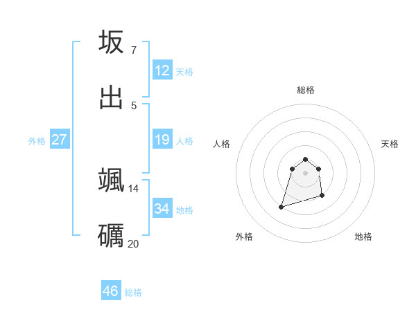 坂出 颯礪さんの総格は46画の1点!