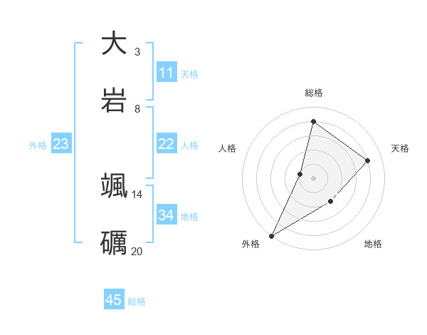 大岩 颯礪さんの総格は45画の4点!