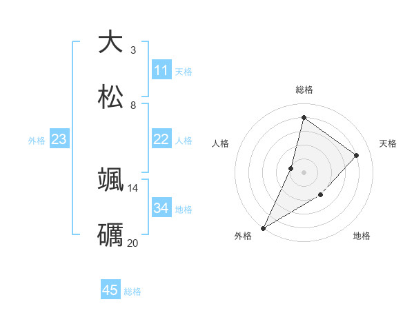 大松 颯礪さんの天格は11画の4点!