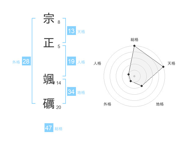 宗正 颯礪さんの総格は47画の5点!