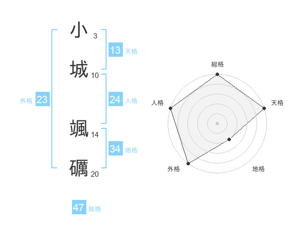 小城 颯礪さんの総格は47画の5点!