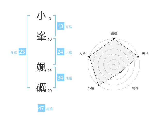 小峯 颯礪さんの総格は47画の5点!