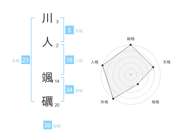 川人 颯礪さんの外格は23画の5点!