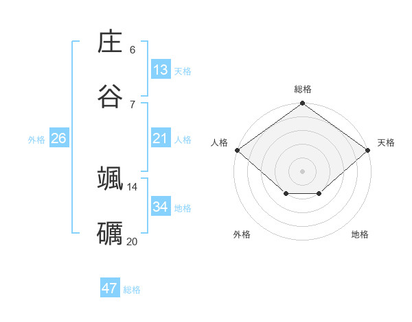 庄谷 颯礪さんの総格は47画の5点!