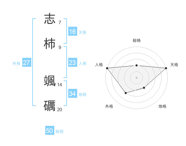 志柿 颯礪さんの総格は50画の2点!