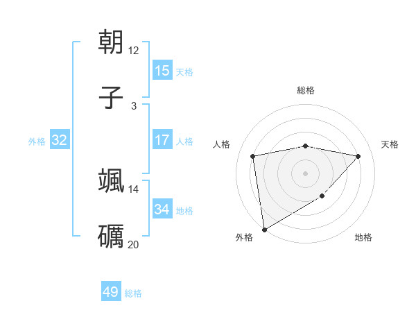 朝子 颯礪さんの外格は32画の5点!