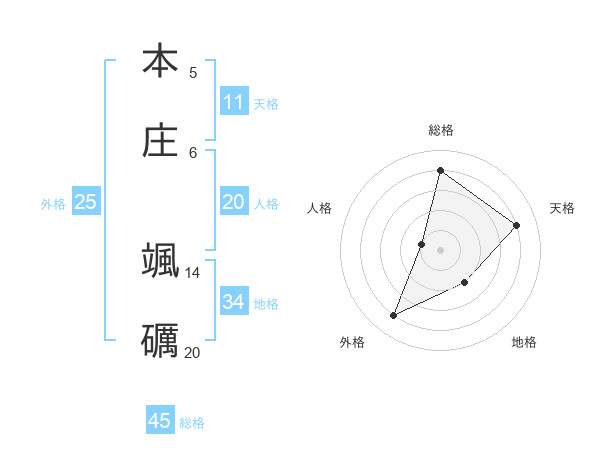本庄 颯礪さんの外格は25画の4点!
