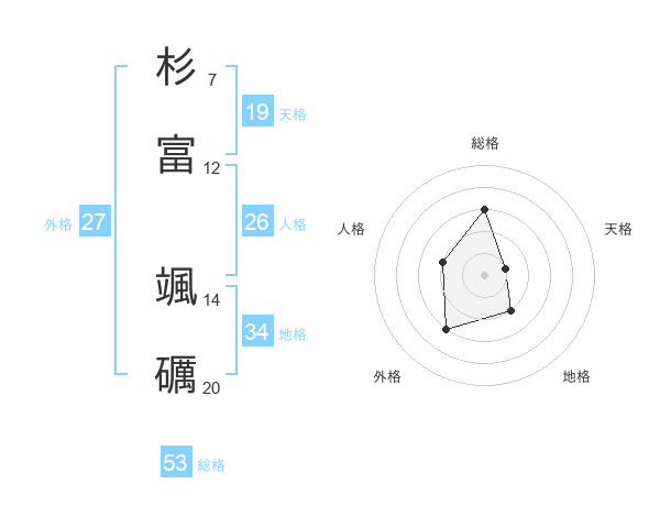 杉富 颯礪さんを姓名の画数から五運を鑑定