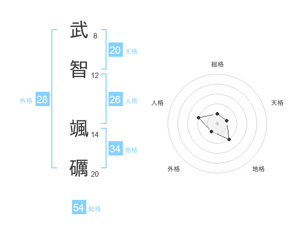 武智 颯礪さんを姓名の画数から五運を鑑定