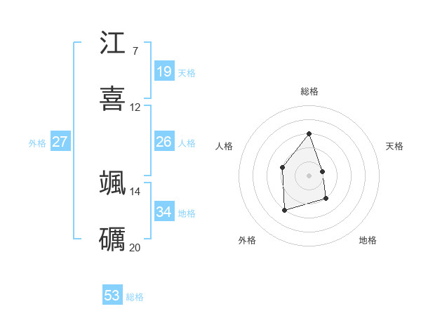 江喜 颯礪さんの総格は53画の3点!