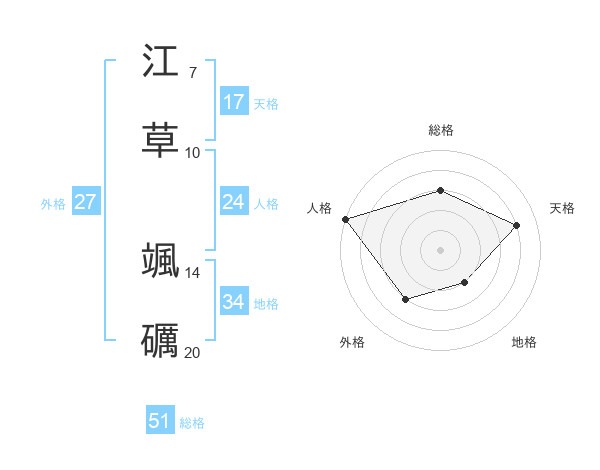 江草 颯礪さんを姓名の画数から五運を鑑定