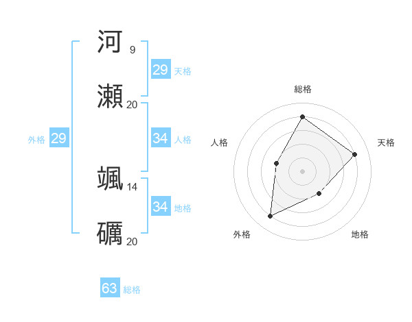 河瀬 颯礪さんの天格は29画の4点!