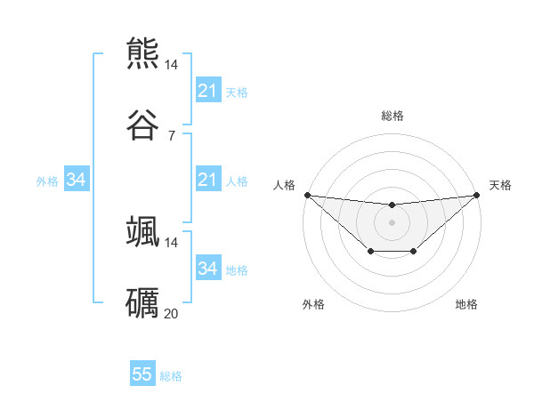 熊谷 颯礪さんを姓名の画数から五運を鑑定