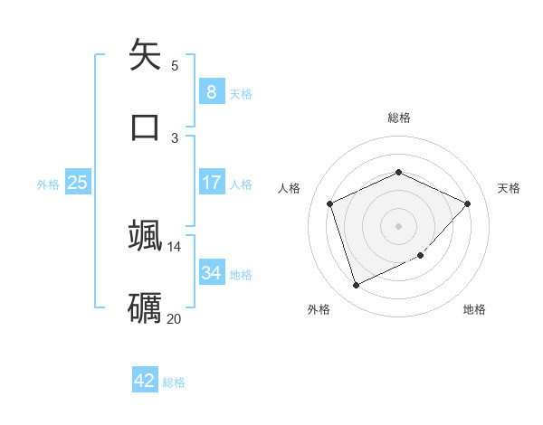 矢口 颯礪さんの外格は25画の4点!
