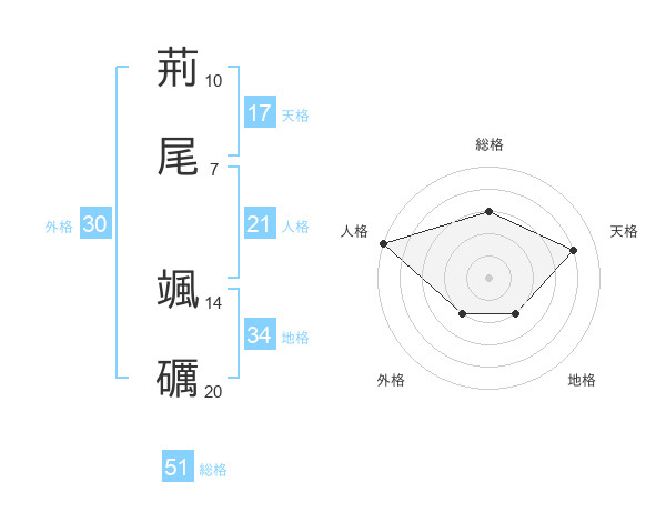 荊尾 颯礪さんを姓名の画数から五運を鑑定