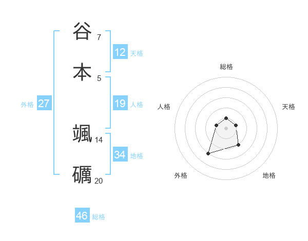 谷本 颯礪さんを姓名の画数から五運を鑑定
