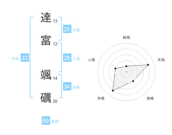 達富 颯礪さんの総格は59画の1点!