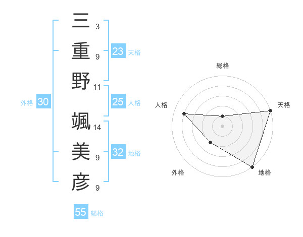 三重野 颯美彦さんの地格は32画の5点!