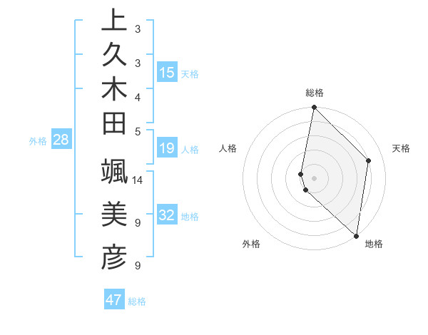 上久木田 颯美彦さんを姓名の画数から五運を鑑定