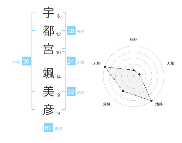 宇都宮 颯美彦さんの総格は60画の1点