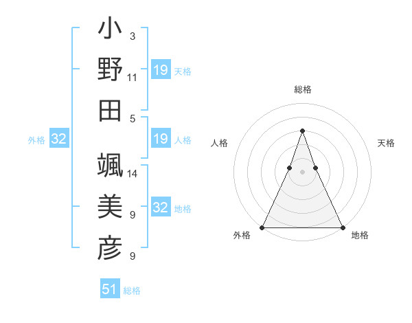 小野田 颯美彦さんの総格は51画の3点!
